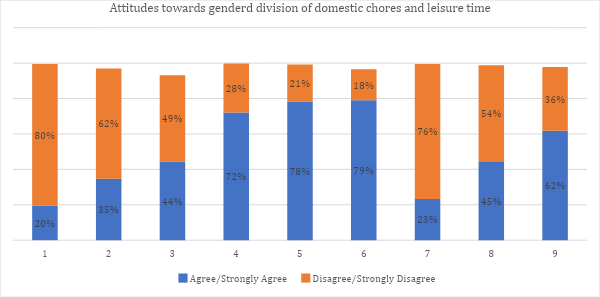 In our intervention areas we found that, during the baseline, 36% of people disagreed with the statement, “Boys don’t need to help with household chores.” By endline, this has now improved considerably, up to 76%!