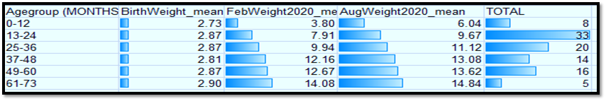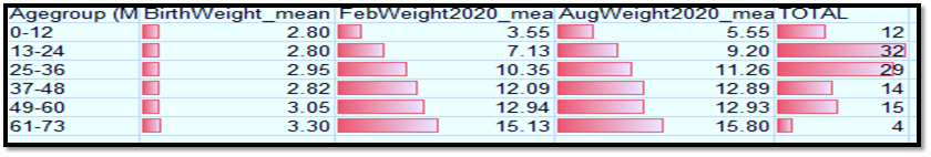 Also, by analysing the above data, we can see that there may be the effect of covid-19 on the malnutrition of children in the age group of 3-6 years. In the first couple of years, there is a natural growth as children mostly feed on their breastmilk which provides the proper nutrition. But after the third year, the difference in the growth of body weight i.e., before and after the pandemic, is almost static. The primary reason can be the lack of a nutritious diet which is essential for the growing child.