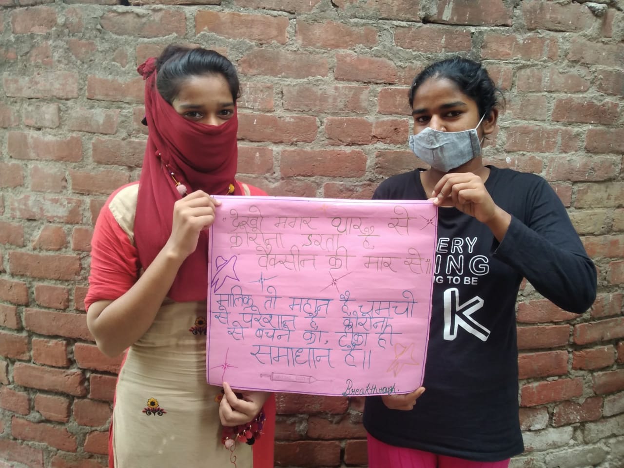 We held meetings with the women of the village and explained to them the importance of vaccination through posters and charts. We did wall writing and even called the ASHA workers (community health workers) of the village to support us in spreading awareness about vaccination!”