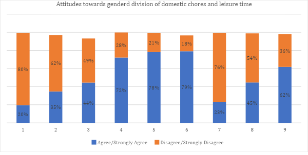 In our intervention areas we found that, during the baseline, 36% of people disagreed with the statement, “Boys don’t need to help with household chores.” By endline, this has now improved considerably, up to 76%!